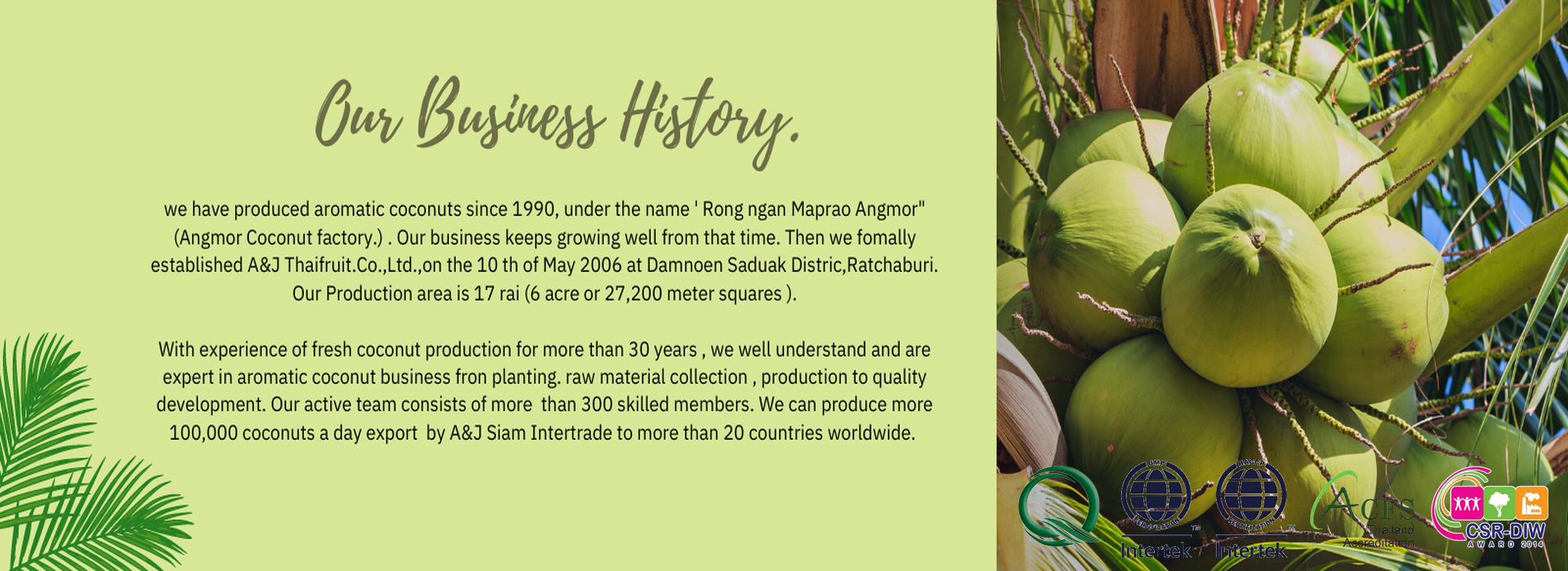 Aromatic coconuts contain specialty that good for health. We then try to preserve its unique and wonderful taste for customers.